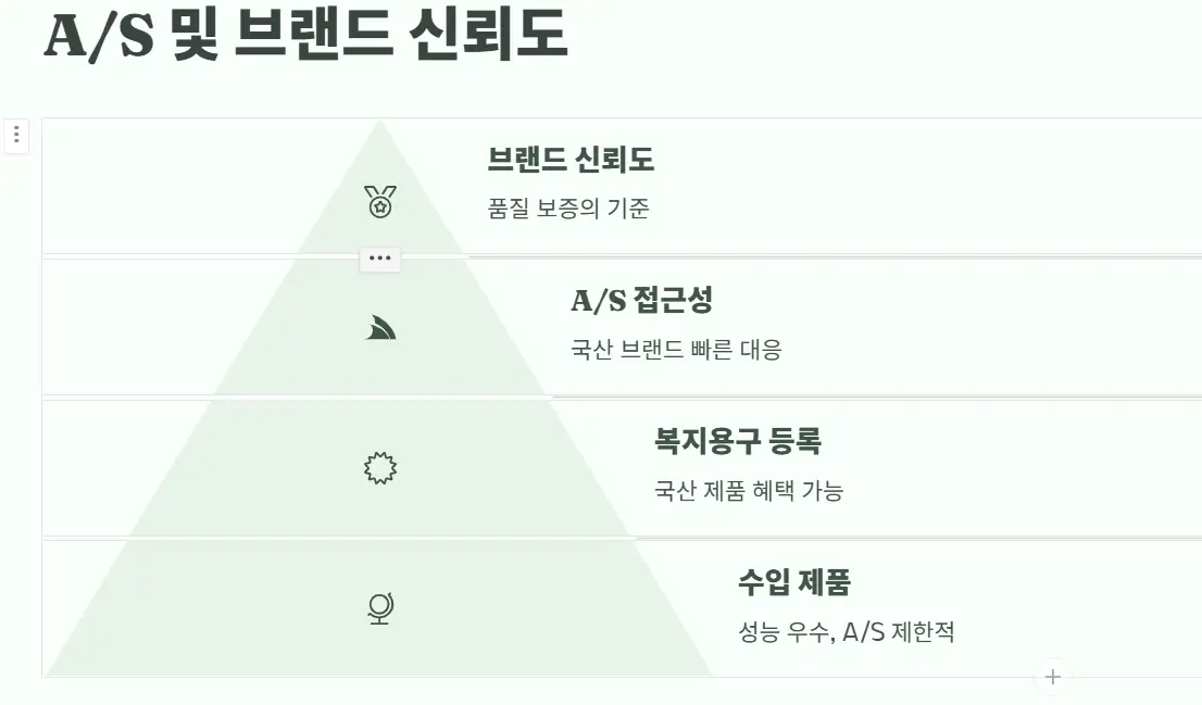 국산 브랜드는 A/S가 빠르고, 복지용구 등록이 가능한 경우도 많습니다. 수입 제품은 성능이 우수하지만 A/S가 제한적일 수 있습니다.